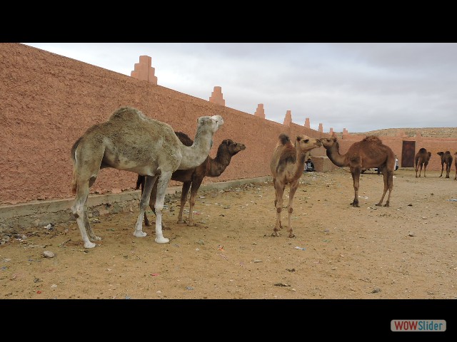 Ce matin départ en taxi pour le souk de Guelmime réputé pur son marché de dromadaire (le dromadaire Marocain 1000€ et le Malien 2000€ car plus intélligent, parait que c'est un vrai GPS pour trouver de l'eau et se diriger). A midi je mange du filet de dromadaire et mes femmes escalopes de dindes aus champignons. Pour digérer partie de pétanque puis en pleine partie la pluie arrive. Comme c'est notre dernier chez Paul, nous mangeons une omelette Berbère.